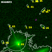 Black segments are analyzed here. Roll mouse over color images to view segments. Best viewed in a wide browser window (1200 pixels or more). Download SED & P(z) plots to view larger versions.