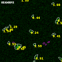 Black segments are analyzed here. Roll mouse over color images to view segments. Best viewed in a wide browser window (1200 pixels or more). Download SED & P(z) plots to view larger versions.