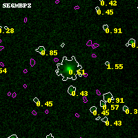 Black segments are analyzed here. Roll mouse over color images to view segments. Best viewed in a wide browser window (1200 pixels or more). Download SED & P(z) plots to view larger versions.