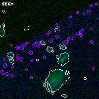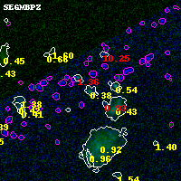 Black segments are analyzed here. Roll mouse over color images to view segments. Best viewed in a wide browser window (1200 pixels or more). Download SED & P(z) plots to view larger versions.