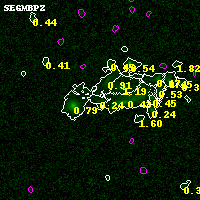 Black segments are analyzed here. Roll mouse over color images to view segments. Best viewed in a wide browser window (1200 pixels or more). Download SED & P(z) plots to view larger versions.