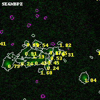 Black segments are analyzed here. Roll mouse over color images to view segments. Best viewed in a wide browser window (1200 pixels or more). Download SED & P(z) plots to view larger versions.