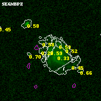 Black segments are analyzed here. Roll mouse over color images to view segments. Best viewed in a wide browser window (1200 pixels or more). Download SED & P(z) plots to view larger versions.