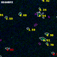 Black segments are analyzed here. Roll mouse over color images to view segments. Best viewed in a wide browser window (1200 pixels or more). Download SED & P(z) plots to view larger versions.