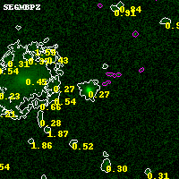 Black segments are analyzed here. Roll mouse over color images to view segments. Best viewed in a wide browser window (1200 pixels or more). Download SED & P(z) plots to view larger versions.