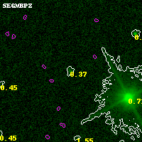 Black segments are analyzed here. Roll mouse over color images to view segments. Best viewed in a wide browser window (1200 pixels or more). Download SED & P(z) plots to view larger versions.