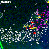 Black segments are analyzed here. Roll mouse over color images to view segments. Best viewed in a wide browser window (1200 pixels or more). Download SED & P(z) plots to view larger versions.