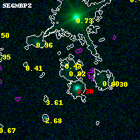 Black segments are analyzed here. Roll mouse over color images to view segments. Best viewed in a wide browser window (1200 pixels or more). Download SED & P(z) plots to view larger versions.