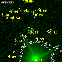 Black segments are analyzed here. Roll mouse over color images to view segments. Best viewed in a wide browser window (1200 pixels or more). Download SED & P(z) plots to view larger versions.
