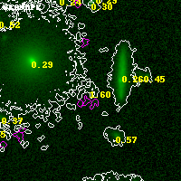 Black segments are analyzed here. Roll mouse over color images to view segments. Best viewed in a wide browser window (1200 pixels or more). Download SED & P(z) plots to view larger versions.