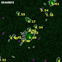 Black segments are analyzed here. Roll mouse over color images to view segments. Best viewed in a wide browser window (1200 pixels or more). Download SED & P(z) plots to view larger versions.
