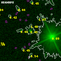 Black segments are analyzed here. Roll mouse over color images to view segments. Best viewed in a wide browser window (1200 pixels or more). Download SED & P(z) plots to view larger versions.