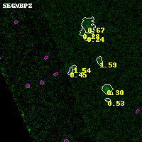 Black segments are analyzed here. Roll mouse over color images to view segments. Best viewed in a wide browser window (1200 pixels or more). Download SED & P(z) plots to view larger versions.