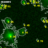 Black segments are analyzed here. Roll mouse over color images to view segments. Best viewed in a wide browser window (1200 pixels or more). Download SED & P(z) plots to view larger versions.