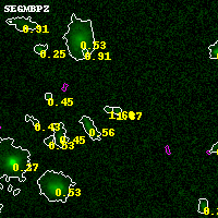 Black segments are analyzed here. Roll mouse over color images to view segments. Best viewed in a wide browser window (1200 pixels or more). Download SED & P(z) plots to view larger versions.