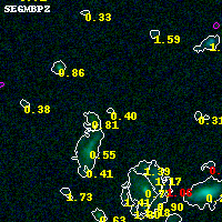 Black segments are analyzed here. Roll mouse over color images to view segments. Best viewed in a wide browser window (1200 pixels or more). Download SED & P(z) plots to view larger versions.
