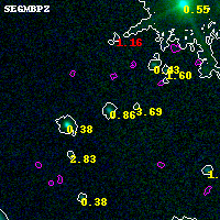 Black segments are analyzed here. Roll mouse over color images to view segments. Best viewed in a wide browser window (1200 pixels or more). Download SED & P(z) plots to view larger versions.