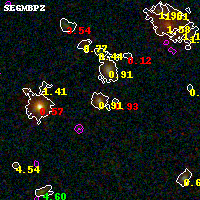 Black segments are analyzed here. Roll mouse over color images to view segments. Best viewed in a wide browser window (1200 pixels or more). Download SED & P(z) plots to view larger versions.