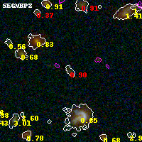 Black segments are analyzed here. Roll mouse over color images to view segments. Best viewed in a wide browser window (1200 pixels or more). Download SED & P(z) plots to view larger versions.
