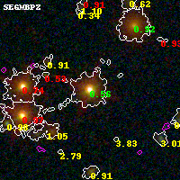 Black segments are analyzed here. Roll mouse over color images to view segments. Best viewed in a wide browser window (1200 pixels or more). Download SED & P(z) plots to view larger versions.