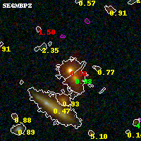 Black segments are analyzed here. Roll mouse over color images to view segments. Best viewed in a wide browser window (1200 pixels or more). Download SED & P(z) plots to view larger versions.