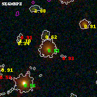 Black segments are analyzed here. Roll mouse over color images to view segments. Best viewed in a wide browser window (1200 pixels or more). Download SED & P(z) plots to view larger versions.
