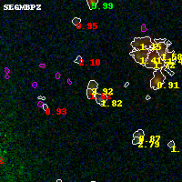 Black segments are analyzed here. Roll mouse over color images to view segments. Best viewed in a wide browser window (1200 pixels or more). Download SED & P(z) plots to view larger versions.
