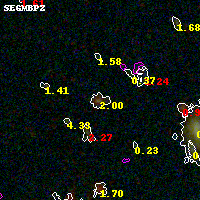 Black segments are analyzed here. Roll mouse over color images to view segments. Best viewed in a wide browser window (1200 pixels or more). Download SED & P(z) plots to view larger versions.