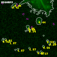 Black segments are analyzed here. Roll mouse over color images to view segments. Best viewed in a wide browser window (1200 pixels or more). Download SED & P(z) plots to view larger versions.