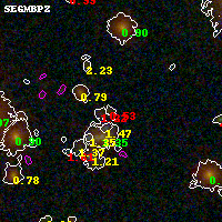 Black segments are analyzed here. Roll mouse over color images to view segments. Best viewed in a wide browser window (1200 pixels or more). Download SED & P(z) plots to view larger versions.