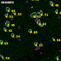Black segments are analyzed here. Roll mouse over color images to view segments. Best viewed in a wide browser window (1200 pixels or more). Download SED & P(z) plots to view larger versions.