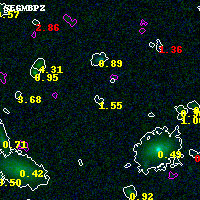 Black segments are analyzed here. Roll mouse over color images to view segments. Best viewed in a wide browser window (1200 pixels or more). Download SED & P(z) plots to view larger versions.