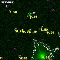 Black segments are analyzed here. Roll mouse over color images to view segments. Best viewed in a wide browser window (1200 pixels or more). Download SED & P(z) plots to view larger versions.