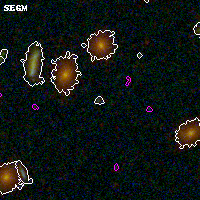 Black segments are analyzed here. Roll mouse over color images to view segments. Best viewed in a wide browser window (1200 pixels or more). Download SED & P(z) plots to view larger versions.