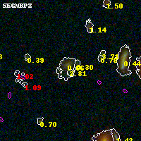 Black segments are analyzed here. Roll mouse over color images to view segments. Best viewed in a wide browser window (1200 pixels or more). Download SED & P(z) plots to view larger versions.