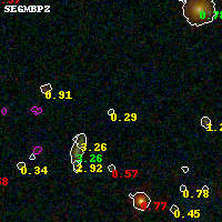 Black segments are analyzed here. Roll mouse over color images to view segments. Best viewed in a wide browser window (1200 pixels or more). Download SED & P(z) plots to view larger versions.