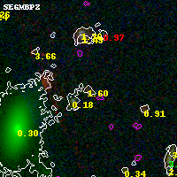 Black segments are analyzed here. Roll mouse over color images to view segments. Best viewed in a wide browser window (1200 pixels or more). Download SED & P(z) plots to view larger versions.