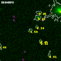 Black segments are analyzed here. Roll mouse over color images to view segments. Best viewed in a wide browser window (1200 pixels or more). Download SED & P(z) plots to view larger versions.