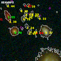 Black segments are analyzed here. Roll mouse over color images to view segments. Best viewed in a wide browser window (1200 pixels or more). Download SED & P(z) plots to view larger versions.