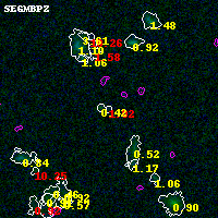 Black segments are analyzed here. Roll mouse over color images to view segments. Best viewed in a wide browser window (1200 pixels or more). Download SED & P(z) plots to view larger versions.