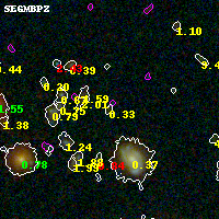 Black segments are analyzed here. Roll mouse over color images to view segments. Best viewed in a wide browser window (1200 pixels or more). Download SED & P(z) plots to view larger versions.