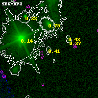 Black segments are analyzed here. Roll mouse over color images to view segments. Best viewed in a wide browser window (1200 pixels or more). Download SED & P(z) plots to view larger versions.