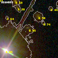 Object #258 x,y = (2753, 2840) RA, Dec = (01:37:24.096, -8:27:01.08) = (24.35040, -8.45030) BPZ = 0.849 [0.294--0.953] type = 6.80 (Scd_B10 - Sbc_B10) chisq2 = 0.03 ODDS = 0.45 z_cluster = 0.566