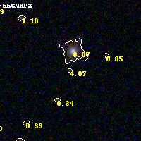 Object #55 x,y = (2536, 3448) RA, Dec = (01:37:24.960, -8:26:24.72) = (24.35400, -8.44020) BPZ = 4.067 [3.790--4.930] type = 11.00 (SB11_A_0_l) chisq2 = 0.70 ODDS = 0.40 z_cluster = 0.566