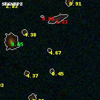 Object #1113 x,y = (2370, 1500) RA, Dec = (01:37:25.656, -8:28:21.72) = (24.35690, -8.47270) BPZ = 4.673 [0.485--5.585] type = 8.20 (SB1_B10 - SB2_B10) chisq2 = 0.55 ODDS = 0.34 z_cluster = 0.566