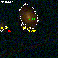 Object #1209 x,y = (2342, 1144) RA, Dec = (01:37:25.752, -8:28:42.96) = (24.35730, -8.47860) BPZ = 0.445 [0.178--3.279] type = 7.40 (Scd_B10 - SB1_B10) chisq2 = 0.80 ODDS = 0.18 z_cluster = 0.566