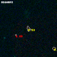 Object #144 x,y = (1296, 3271) RA, Dec = (01:37:30.000, -8:26:35.52) = (24.37500, -8.44320) BPZ = 0.527 [0.208--0.687] type = 9.00 (SB2_B10) chisq2 = 0.45 ODDS = 0.53 z_cluster = 0.566