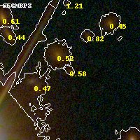 Object #384 x,y = (2803, 2861) RA, Dec = (01:37:23.904, -8:27:0) = (24.34960, -8.45000) BPZ = 0.585 [0.426--5.053] type = 6.00 (Sbc_B10) chisq2 = 0.63 ODDS = 0.25 z_cluster = 0.566