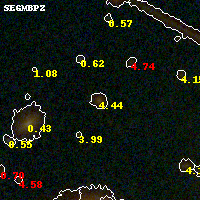 Object #386 x,y = (2387, 2809) RA, Dec = (01:37:25.584, -8:27:03.24) = (24.35660, -8.45090) BPZ = 4.437 [0.298--4.519] type = 7.80 (SB1_B10 - Scd_B10) chisq2 = 0.53 ODDS = 0.49 z_cluster = 0.566