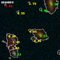Object #393 x,y = (1514, 2802) RA, Dec = (01:37:29.112, -8:27:03.60) = (24.37130, -8.45100) BPZ = 0.553 [0.177--3.475] type = 8.20 (SB1_B10 - SB2_B10) chisq2 = 0.25 ODDS = 0.10 z_cluster = 0.566